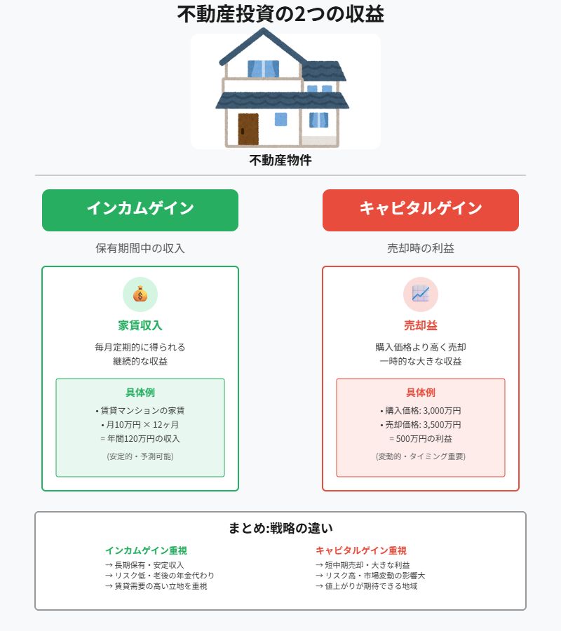 不動産投資の世界には、お金を稼ぐための方法が大きく分けて2つあります。